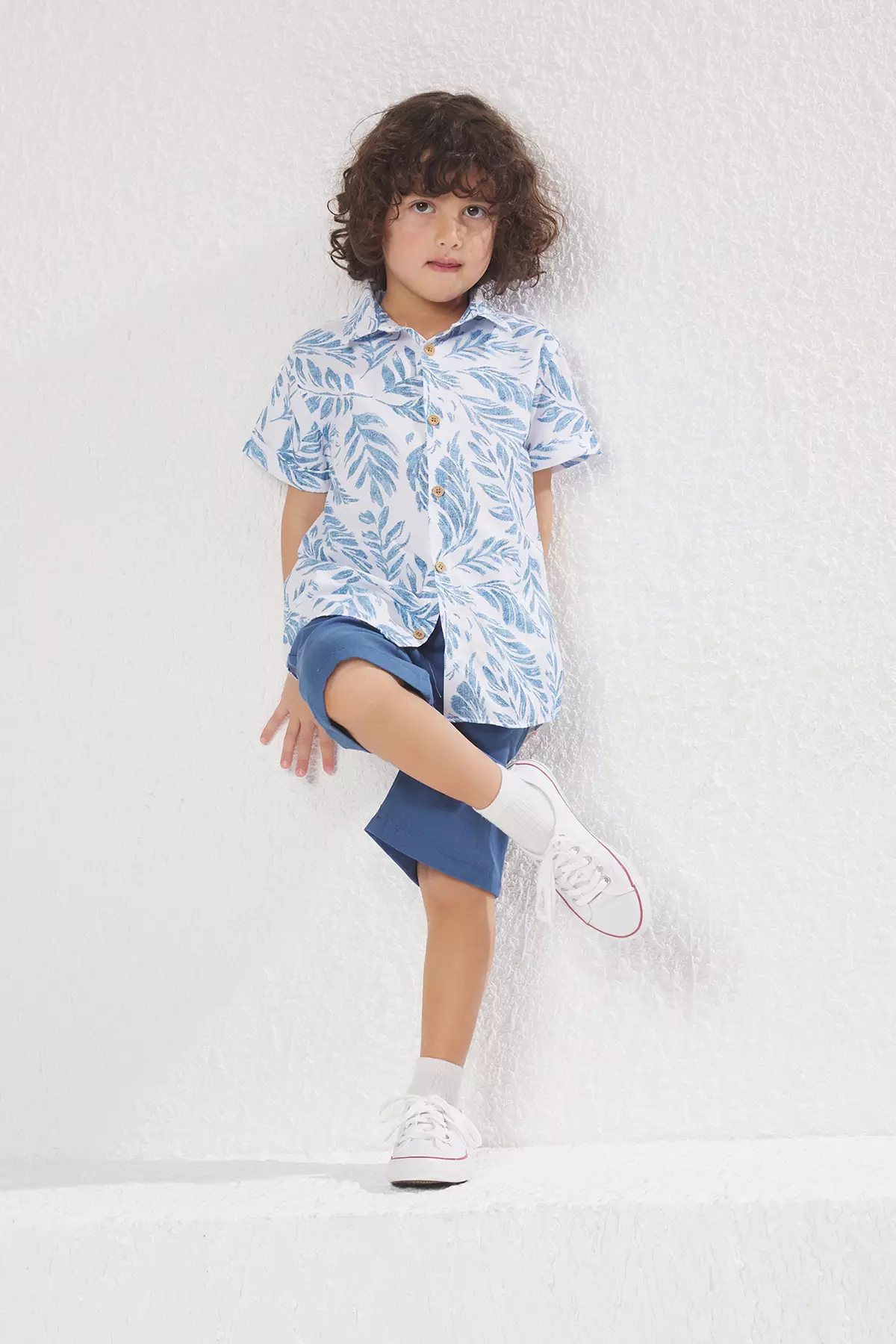 TrendyolBoy's Blue Tropical Printed Cotton Shirt And Shorts Set - Tkdss25Au00035239.00