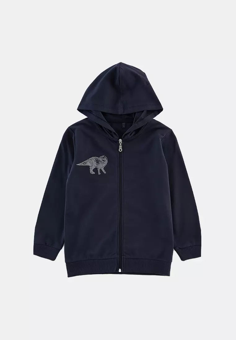 TrendyolBoy's Navy Printed Cotton Knitted Cardigan - Hooded And Zippered Tkdaw25Hi00003159.00