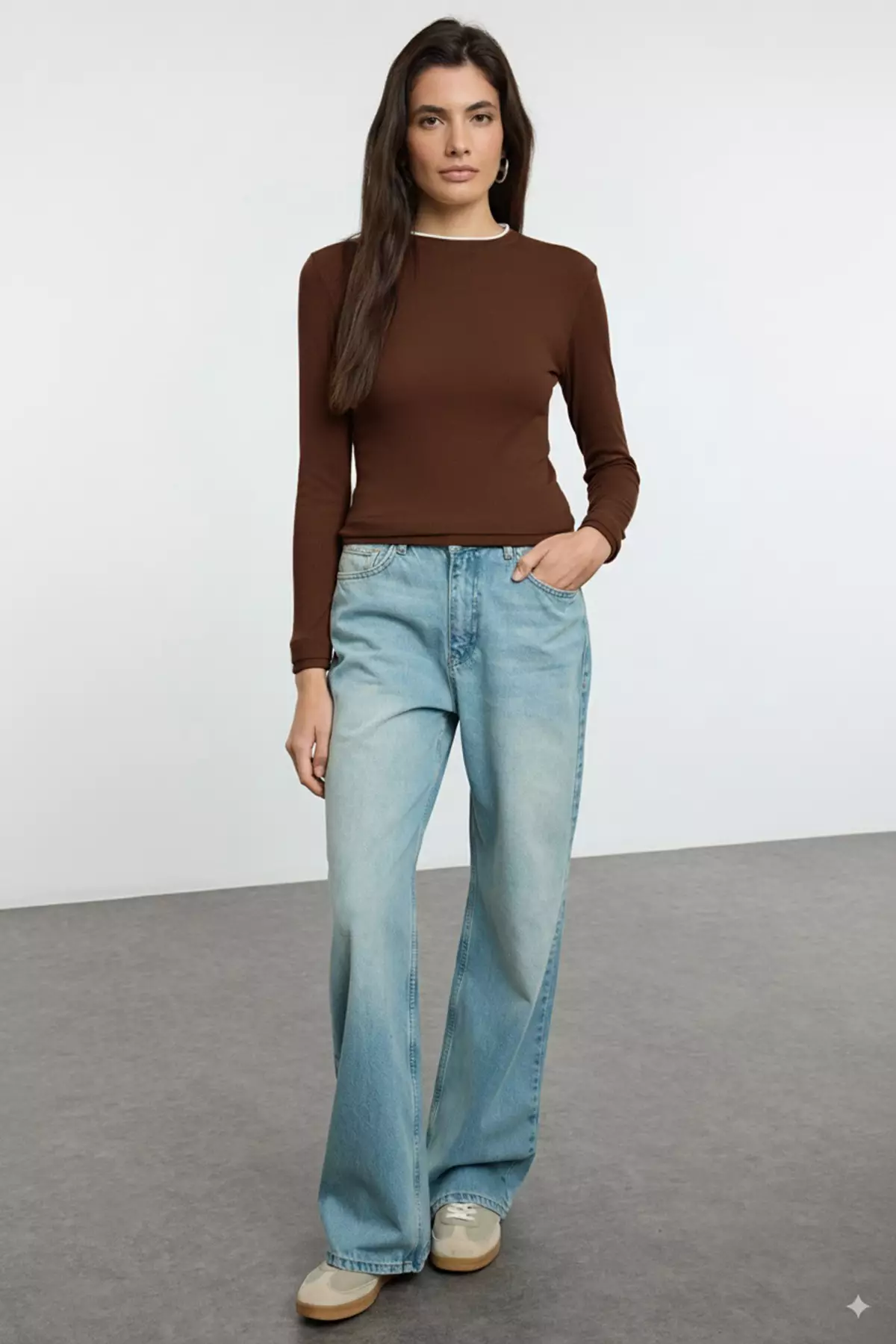 TrendyolBrown Color Block Fitted/Body-Smoothing Viscose/Soft Fabric Flexible Knitted Blouse129.00