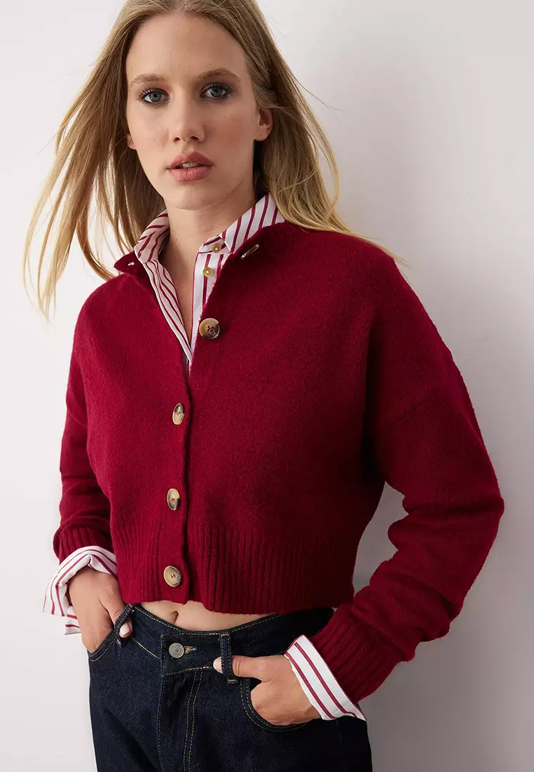 TrendyolBurgundy Crop Soft Textured Button Knitwear Cardigan209.00