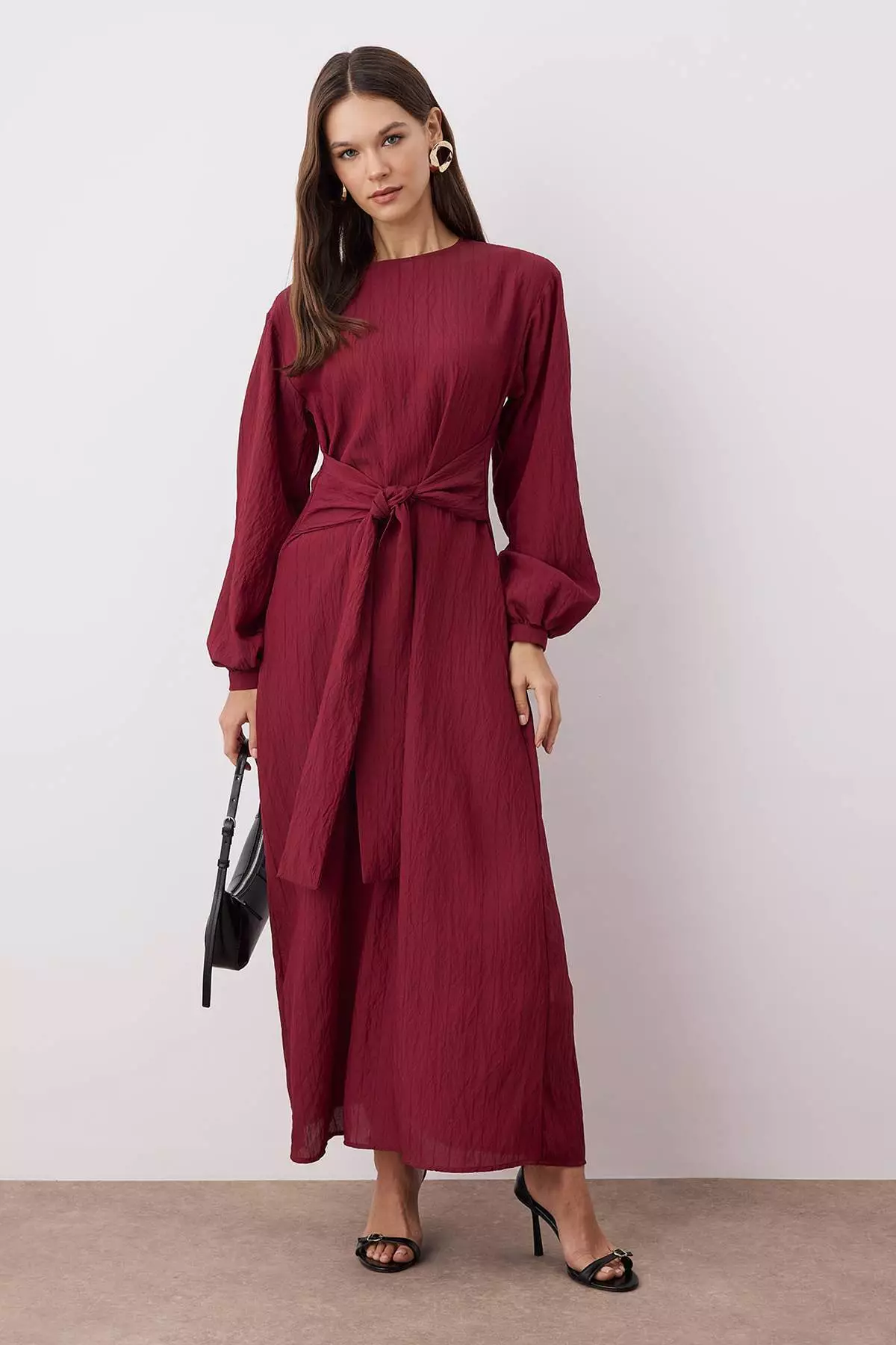 Burgundy Tie-Front Unlined Woven Dress