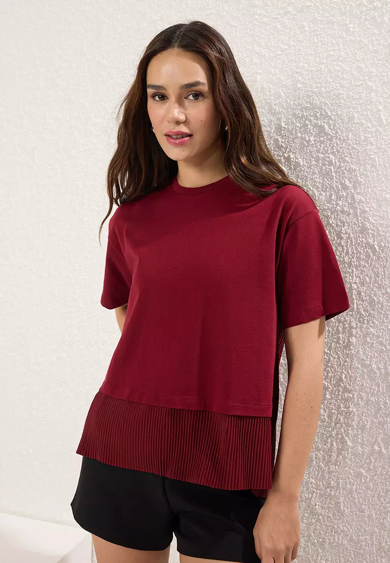 TrendyolClaret Red Oversize/Wide Pattern Pleated Detailed Knitted Blouse TWOSS25BZ00466149.00