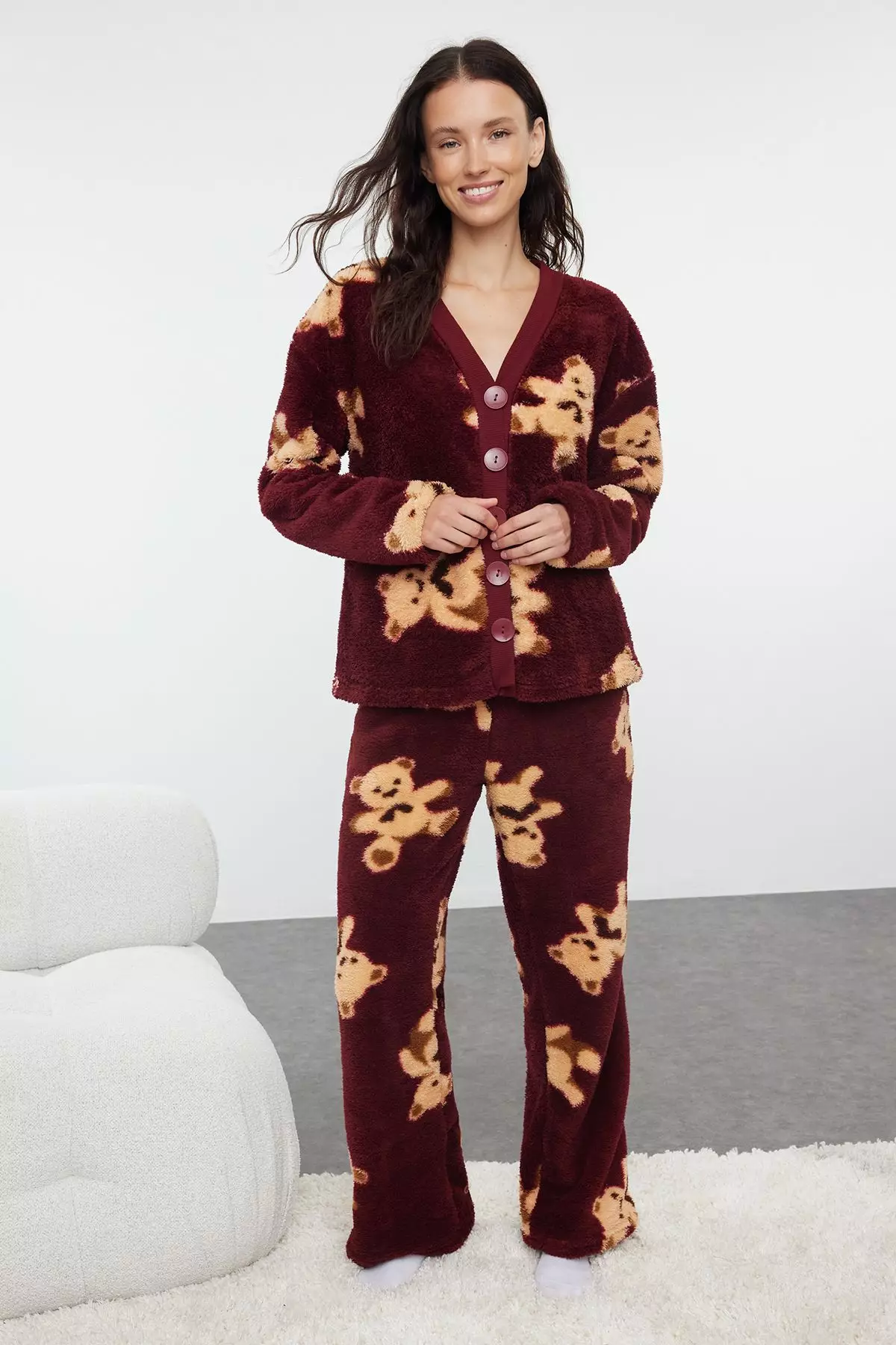 TrendyolClaret Red Teddy Bear Wellsoft Winter Knitted Pajama Set THMAW25PT00055289.00