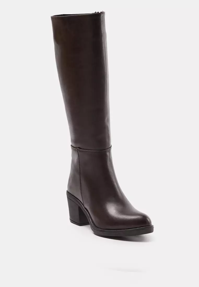 Dark Brown Zip-Up Round Toe Women's Block Heeled Boots Takaw25Cz00004