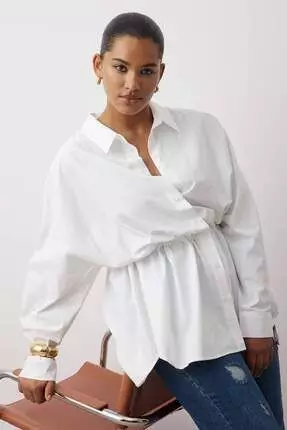 米白色 皺褶 梭織 加大碼 恤衫 Tbbaw26Ax00000