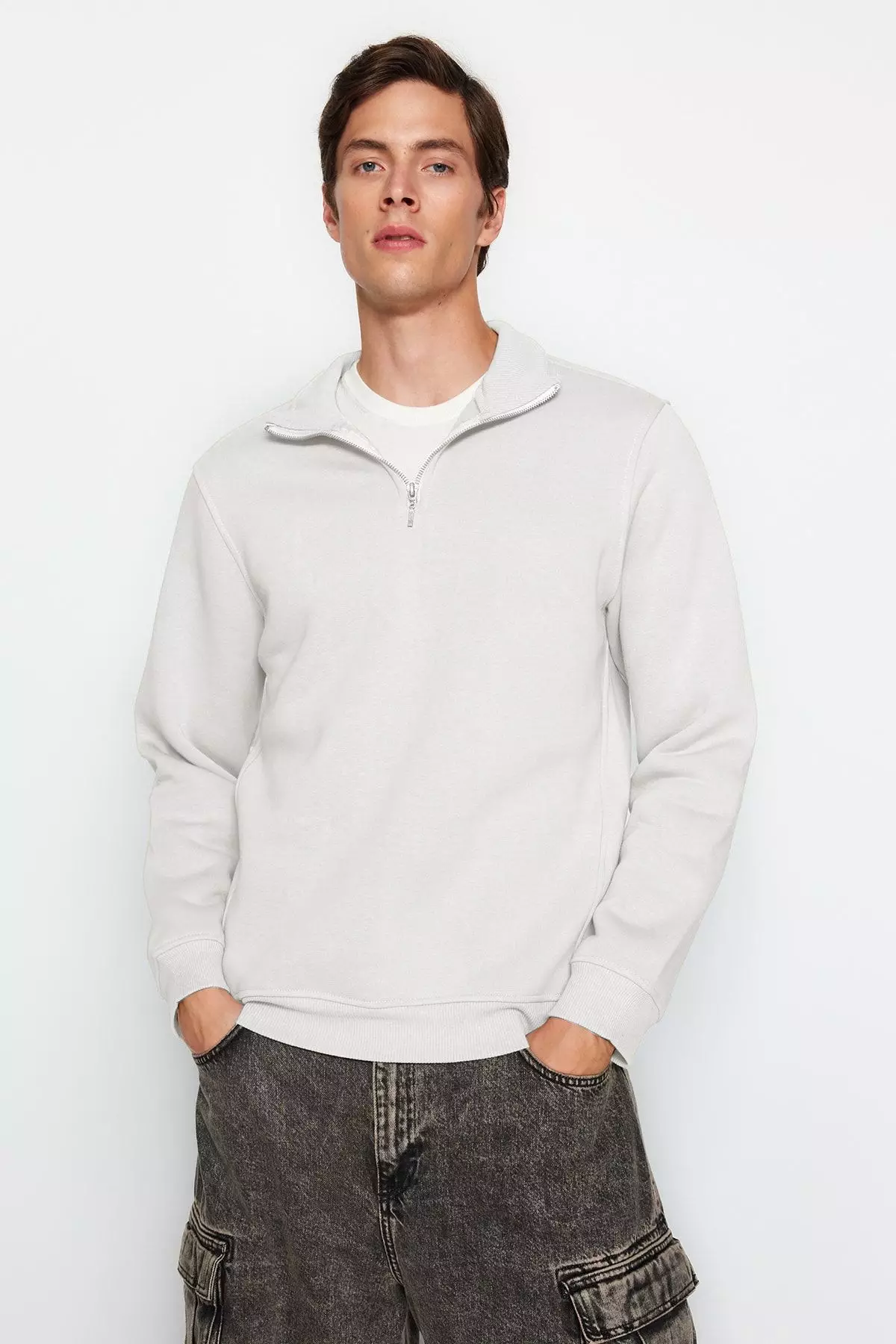 TrendyolEcru Regular/Normal Cut Stand Collar Zippered Inside Polar Fleece/Warm Basic Sweatshirt TMNAW24SW00041249.00