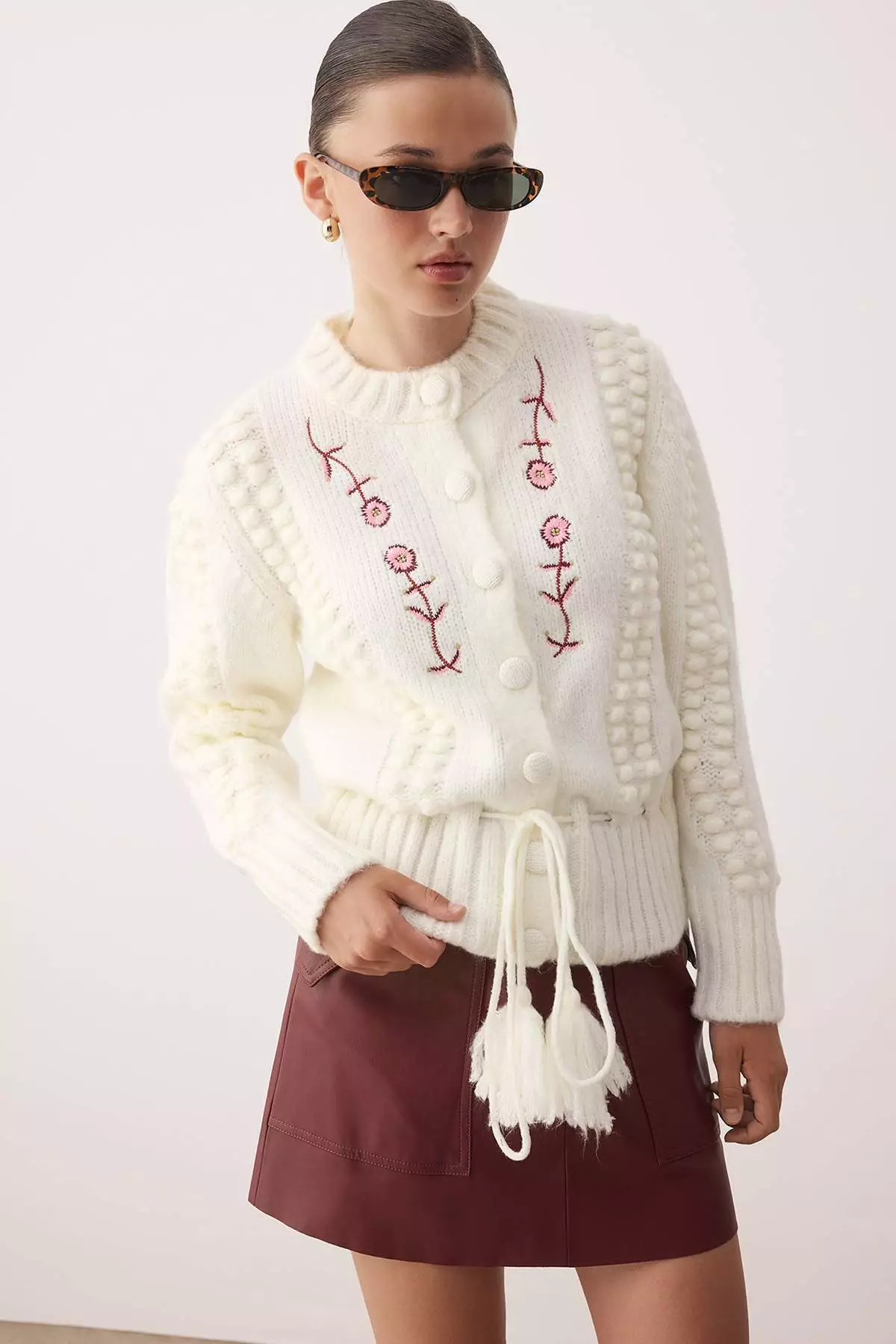 TrendyolEcru Soft Texture Embroidered Knit Cardigan429.00