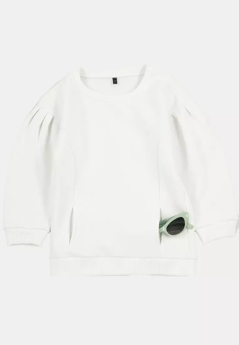 Girl's Ecru Knitted Sweatshirt - Sleeve Drawstring And Pocket Tkdaw25Sw00025