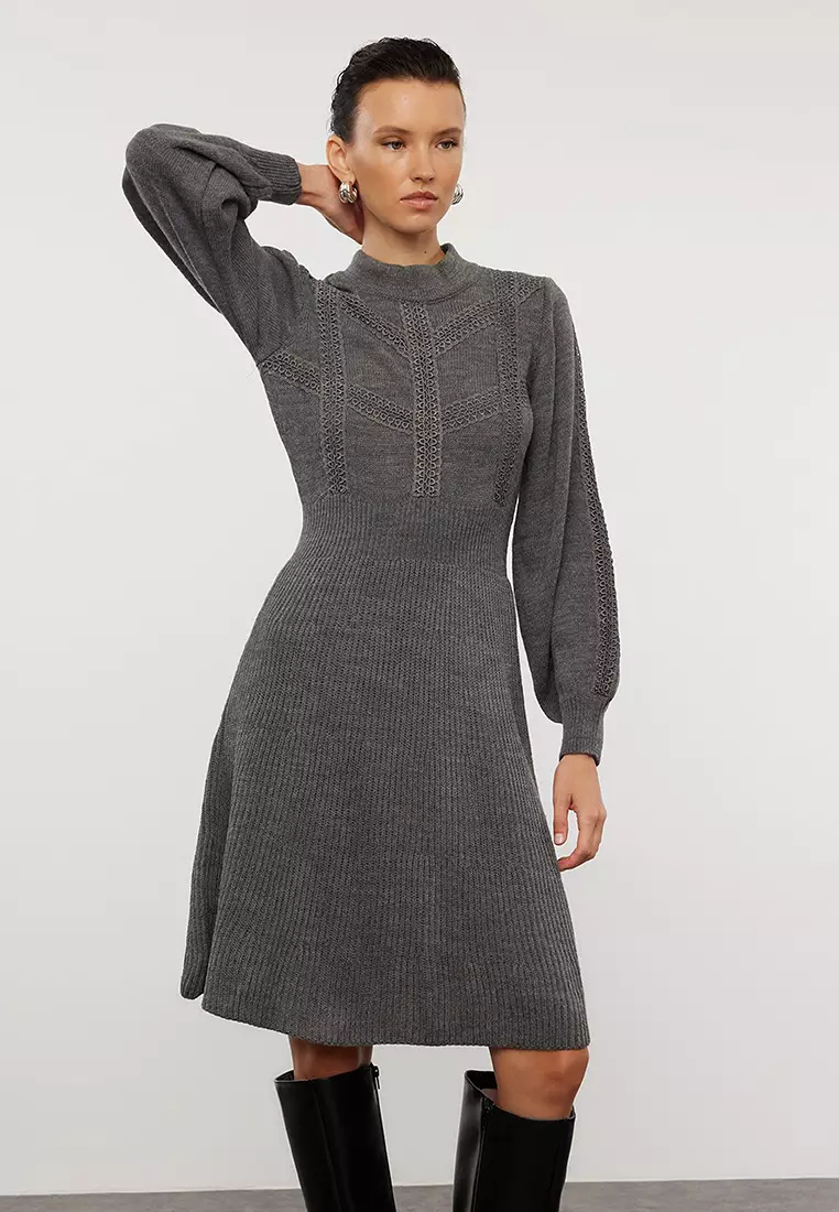 TrendyolGray Mini Knitwear Lace Dress Twoaw22El0011409.00