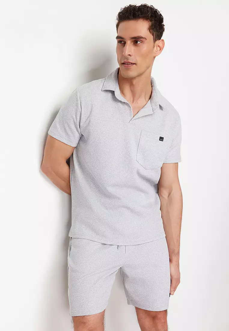 TrendyolGray Regular/Normal Cut Textured Fabric Labeled Polo Collar Tracksuit Set TMNSS23EM00003279.00