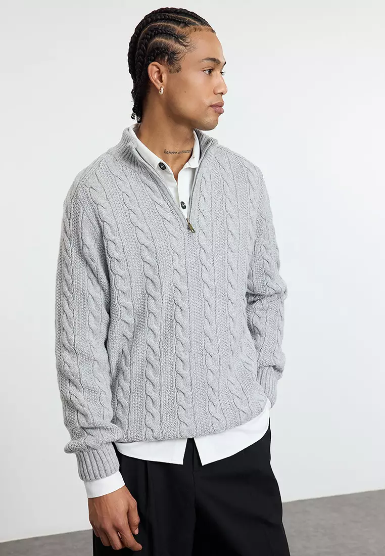 TrendyolGrey Unisex Regular Fit Zippered Half Turtleneck Knit Sweater TMNAW21KZ0737309.00