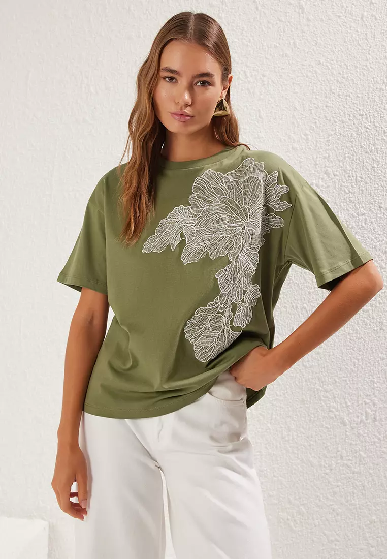 TrendyolKhaki Accessory Detailed Oversize/Wide Pattern Knitted T-Shirt149.00