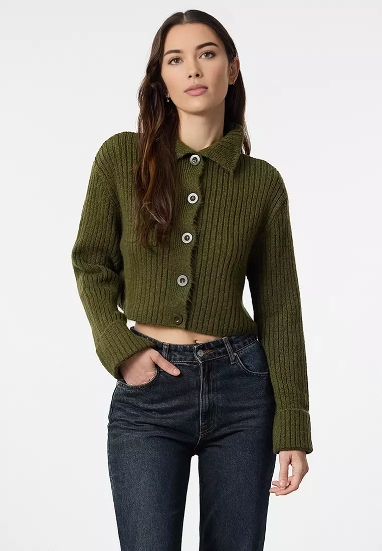 TrendyolKhaki Crop Soft Textured Stand Collar Knitwear Cardigan TWOAW22HI0174239.00