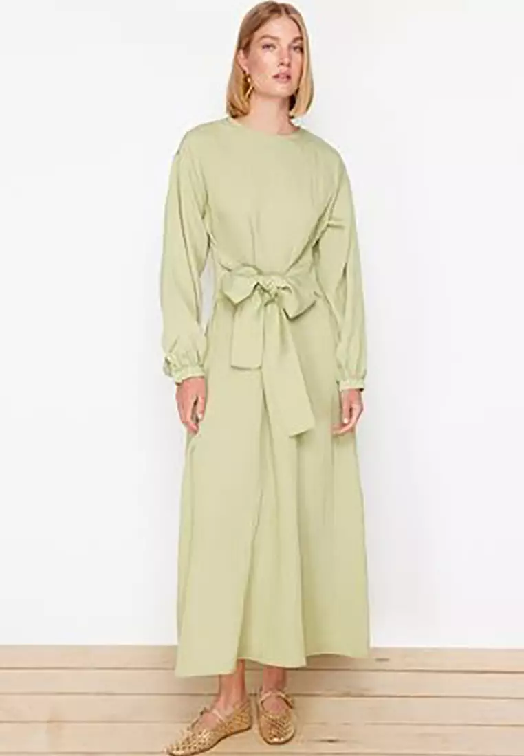 Khaki Front Tie Woven Dress TCTSS24EB00131