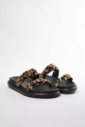 豹紋雙扣啡色厚底女士拖鞋 Takaw25Te00009
