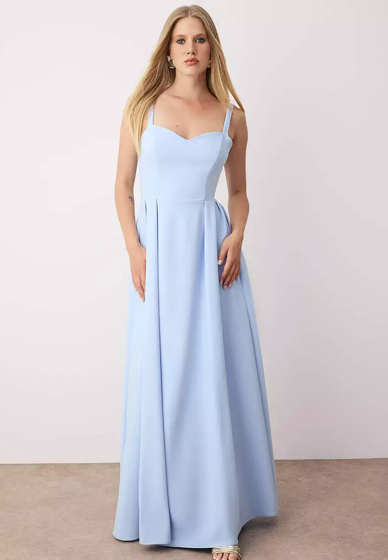 TrendyolLight Blue A Line Back Bow Detail Long Stylish Evening Dress429.00
