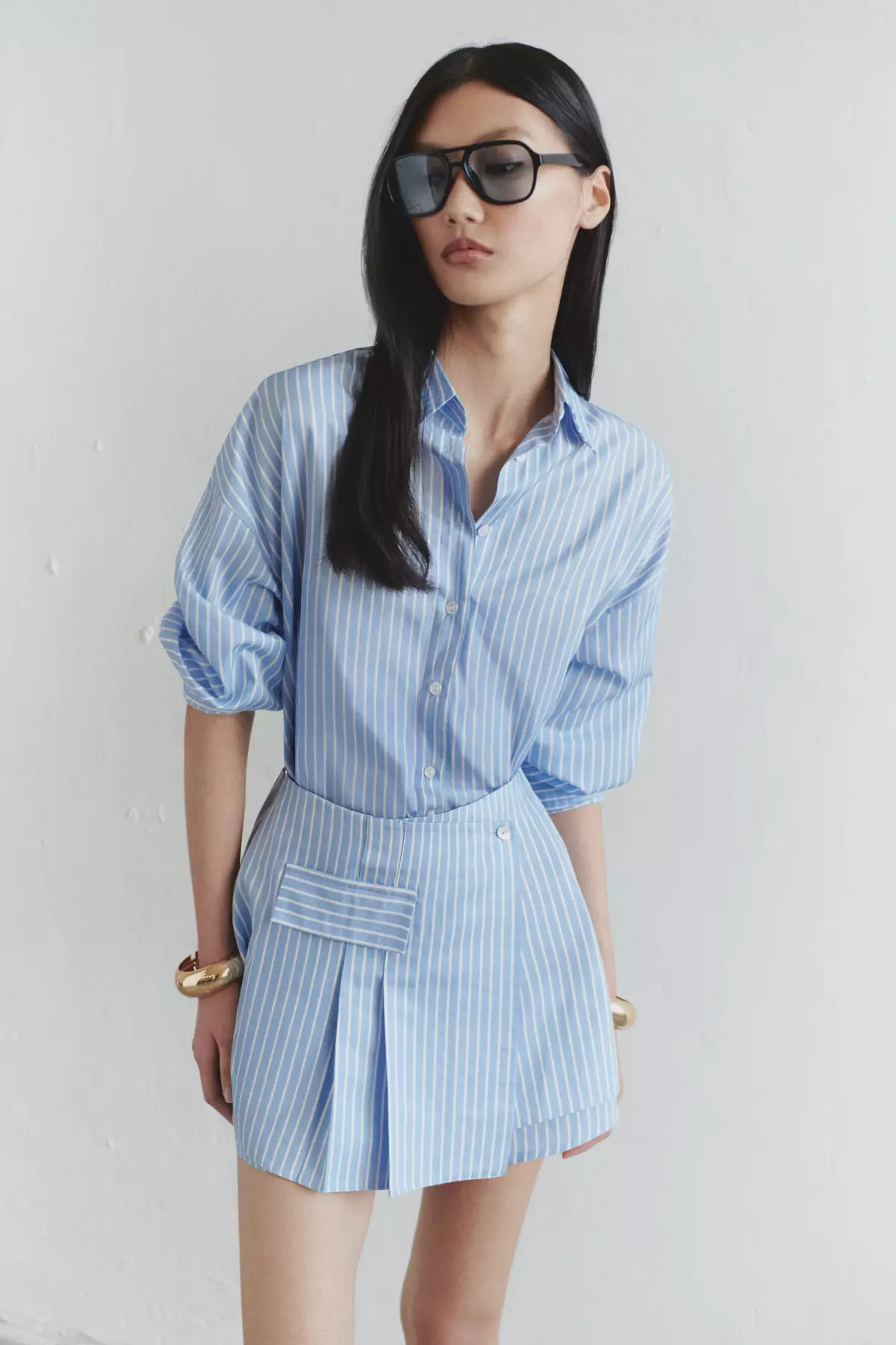 Limited Edition Blue Striped Shirt Detailed Mini Woven Dress TWOSS25EL00522