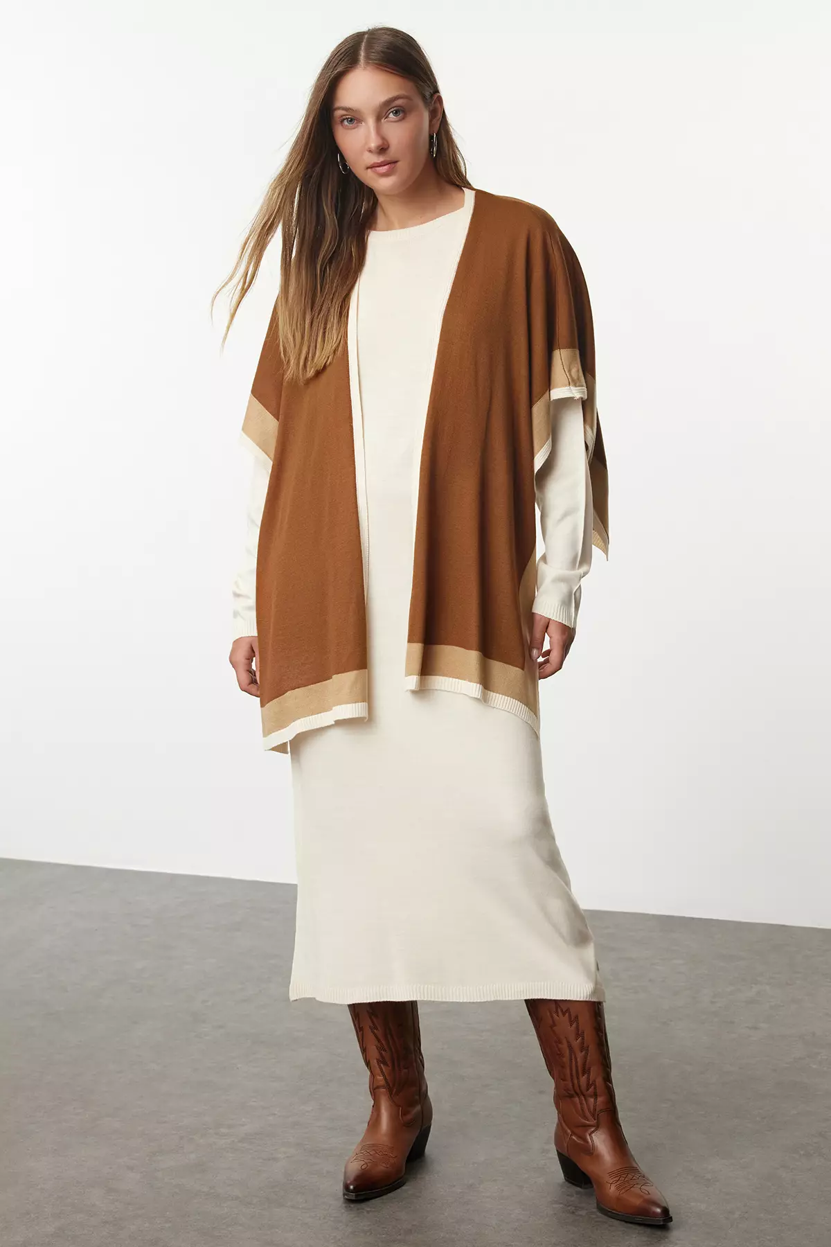 Maxi Ecru Knitwear Scarf Dress