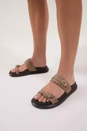 TrendyolMink Double Buckle Brown Thick Sole Women's Slippers Takaw25Te00009269.00