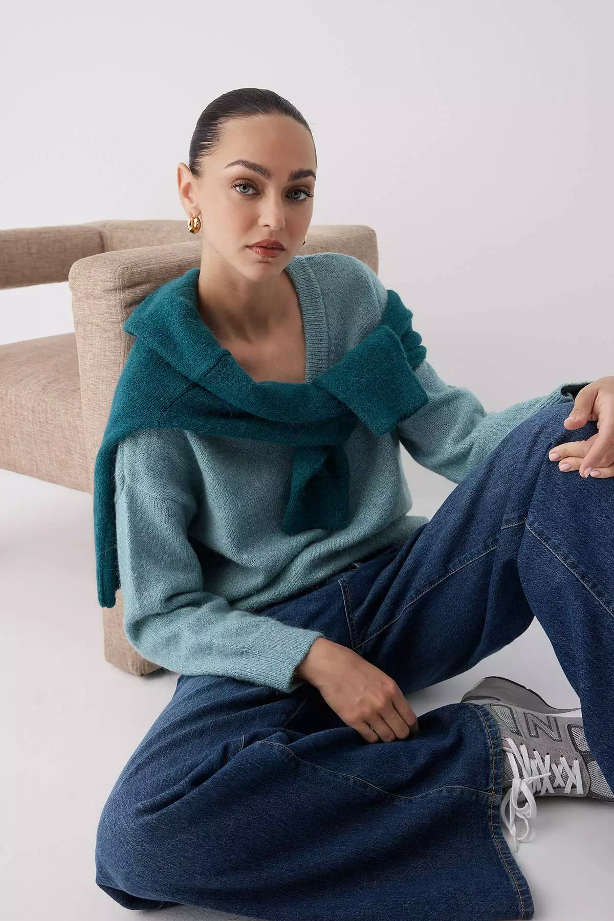 Mint Alpaca Wool Blended Wide Fit Premium Yarn Knitwear Sweater