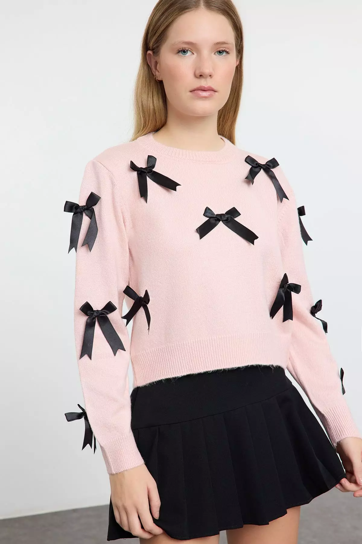 TrendyolPink Soft Textured Ribbon/Bow Detailed Knitwear Sweater TWOAW25KZ00155329.00