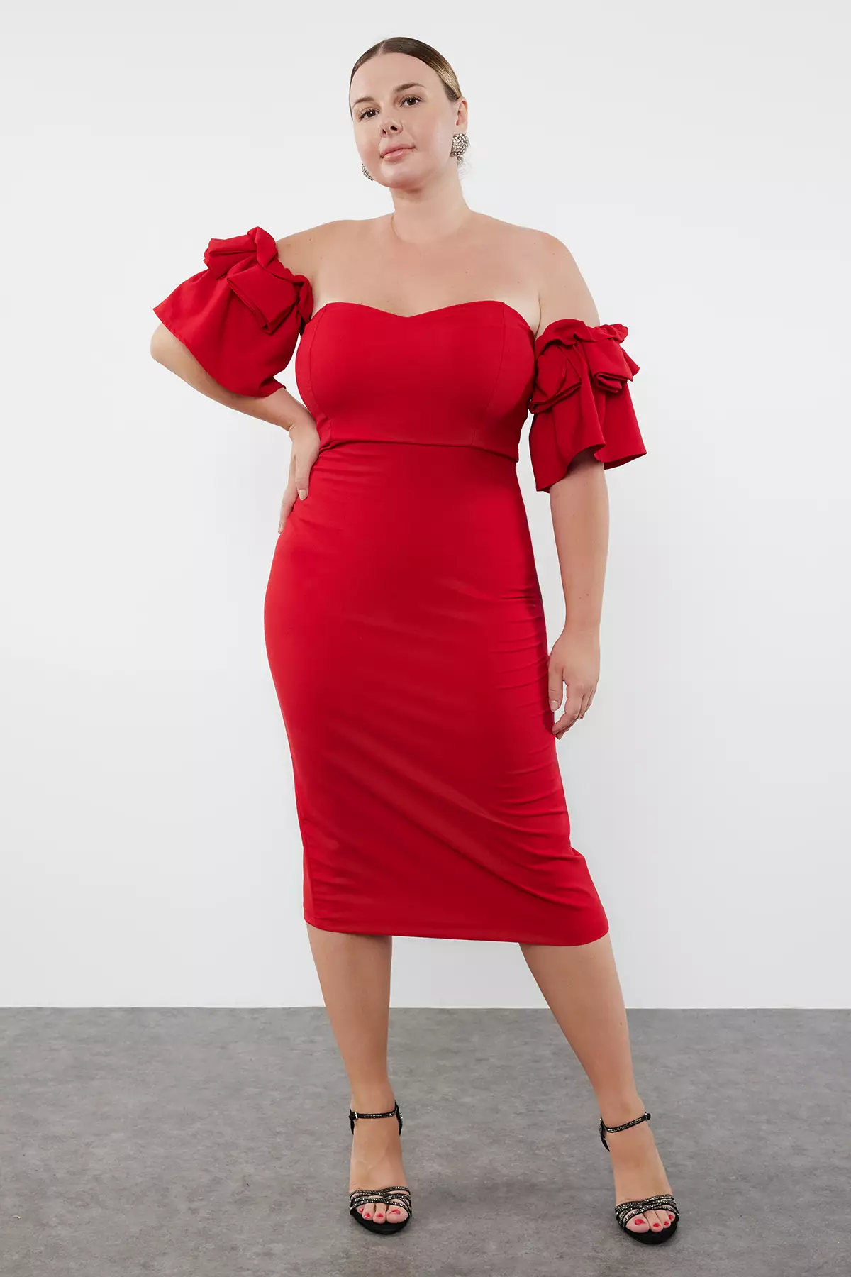 Plus Size Sleeves Detailed Bodycon Dress