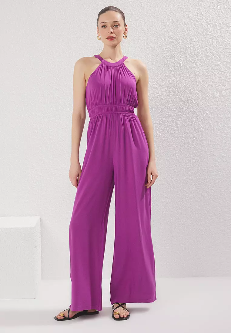 TrendyolPurple Waist Pleated Detail Wide Leg Maxi Woven Jumpsuit TWOSS23TU00121279.00