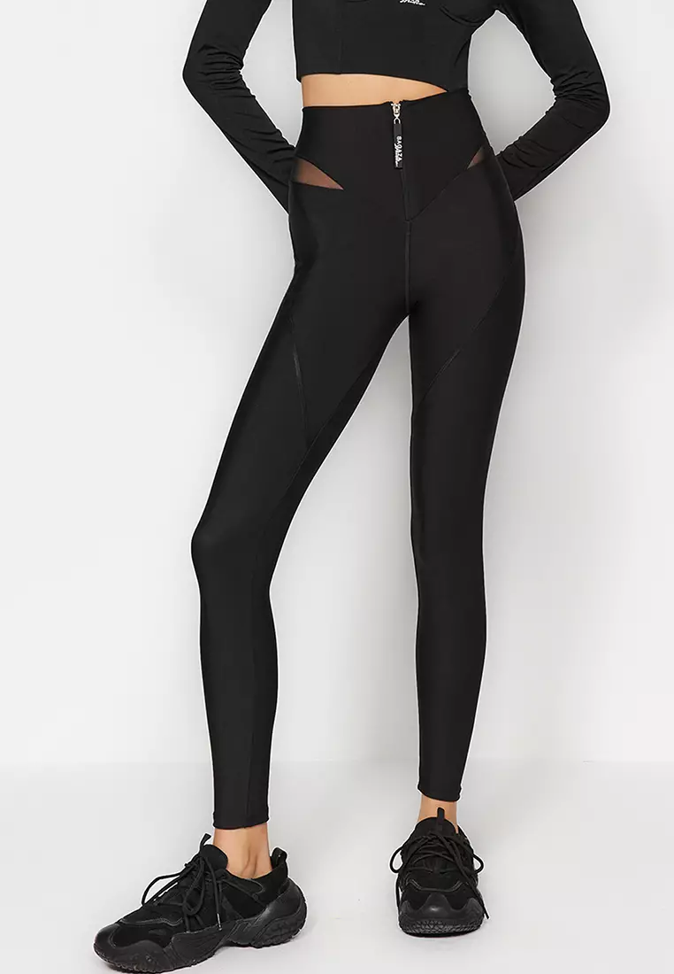 TrendyolX Sagaza Studio Black Gathering Tulle Detail Full Length Sports Leggings TCLAW24TY00000209.00