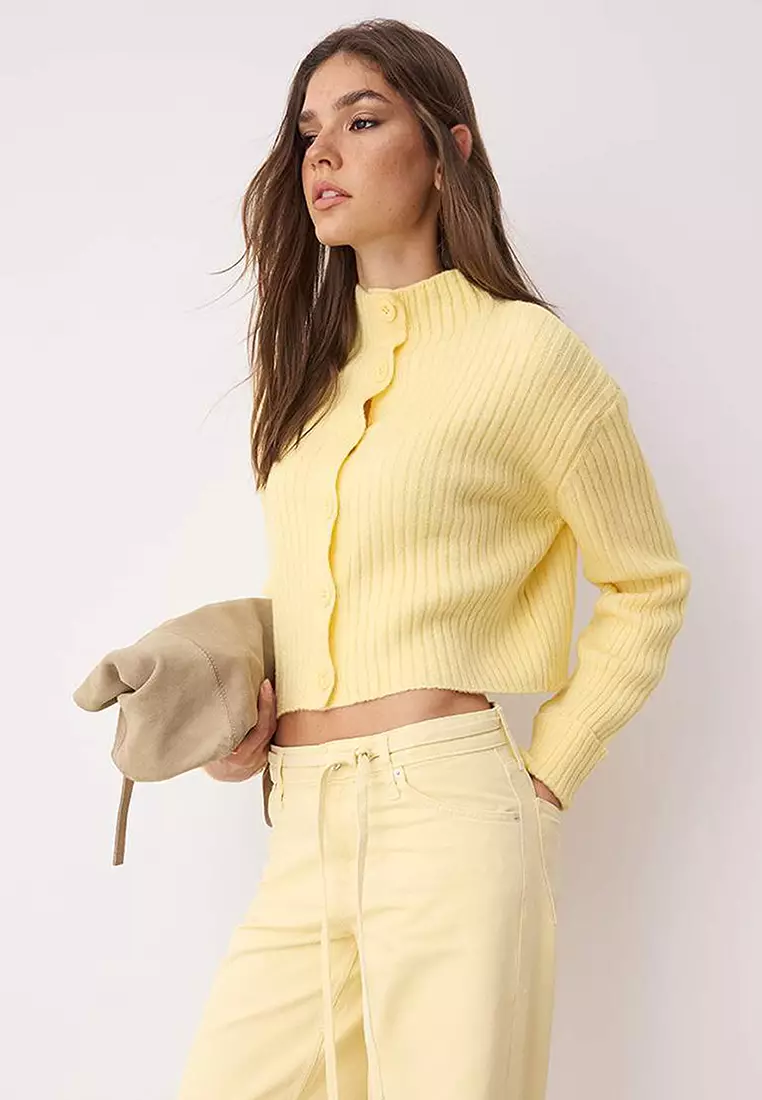 TrendyolYellow Crop Soft Textured Stand Collar Knitwear Cardigan279.00