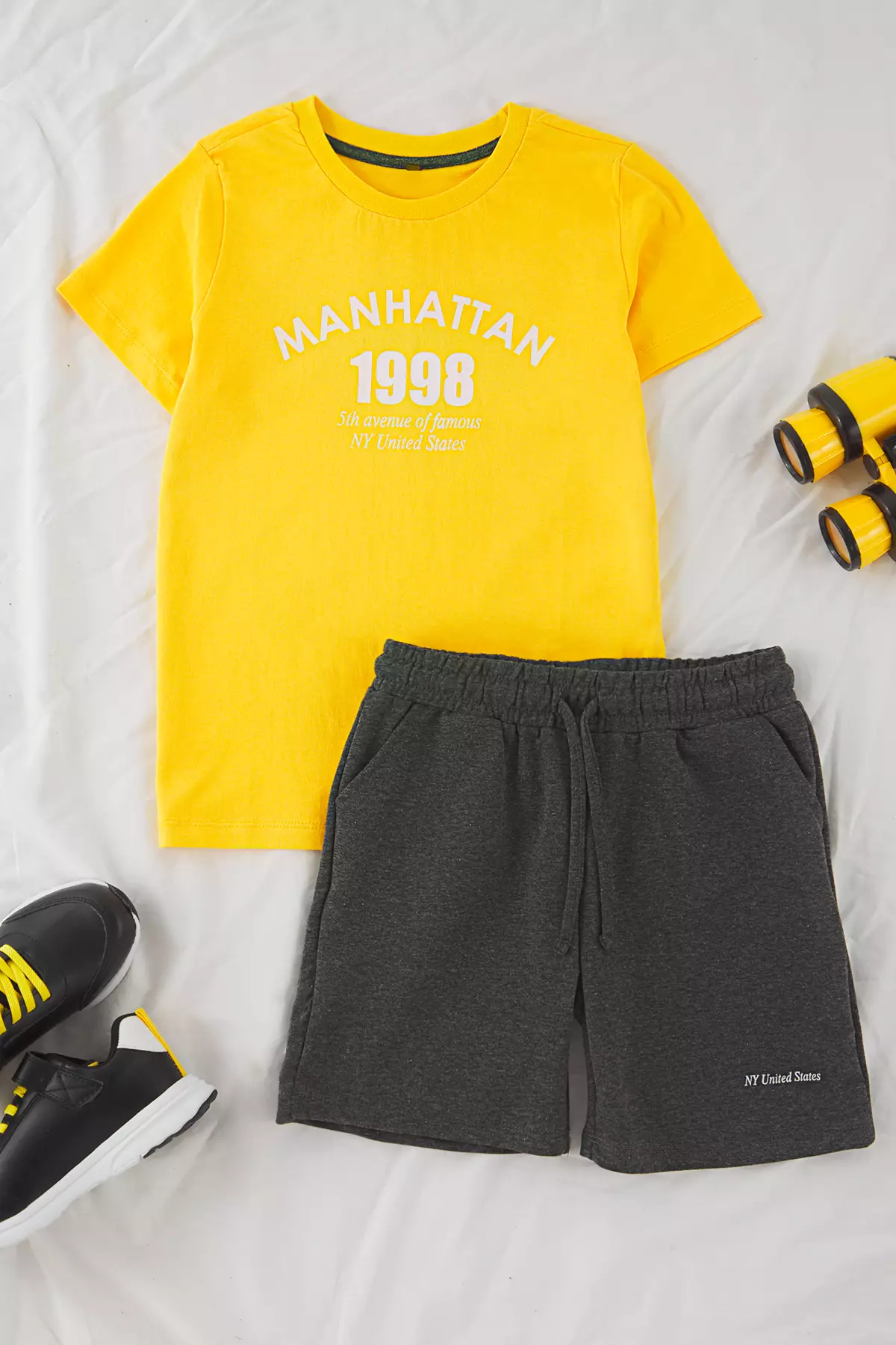 TrendyolYellow Male Child Cotton City Printed T-Shirt Shorts Knitted Bottom-Top Suit Tkdss25Au00028169.00