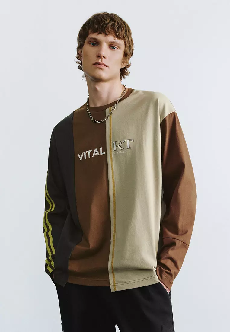 UR冬季新款男街头风解构设计感字母拼色长袖T恤UMV440158