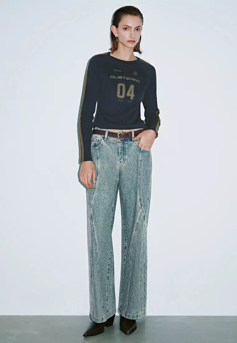 UR春季新款女装复古解构设计感腰带牛仔长裤UYV850002