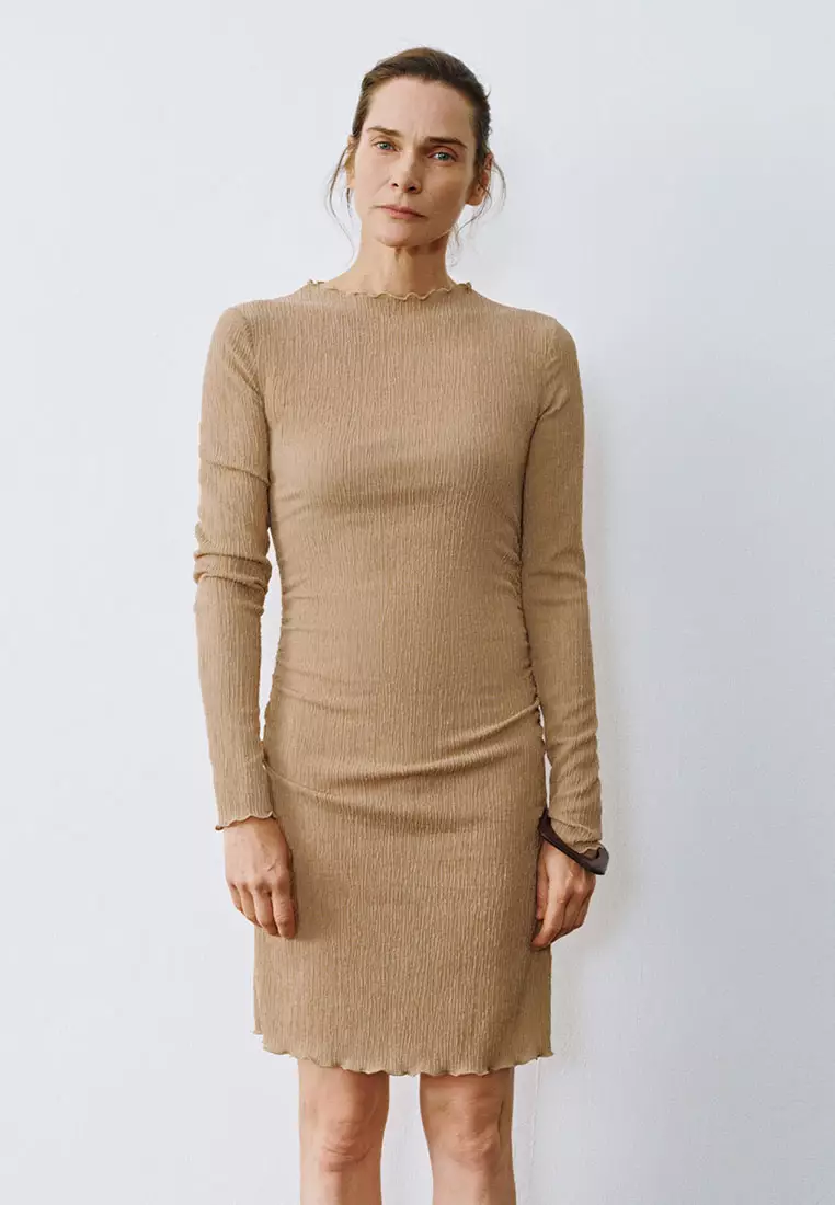 UR秋季新款女装肌理感褶皱收腰修身长袖连衣裙UWM740011