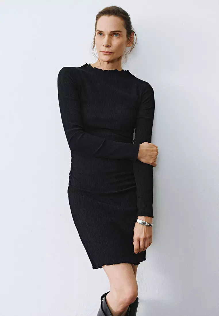 UR秋季新款女装肌理感褶皱收腰修身长袖连衣裙UWM740011